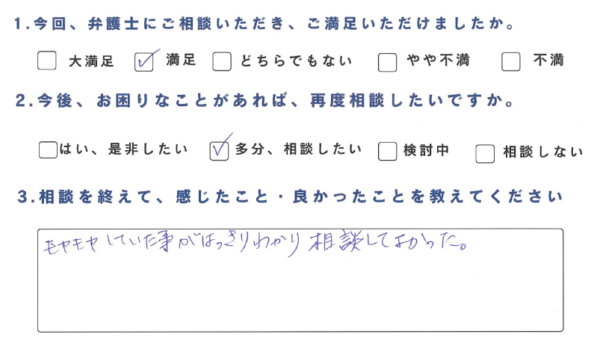 ・モヤモヤしていた事がはっきりわかり相談してよかった。