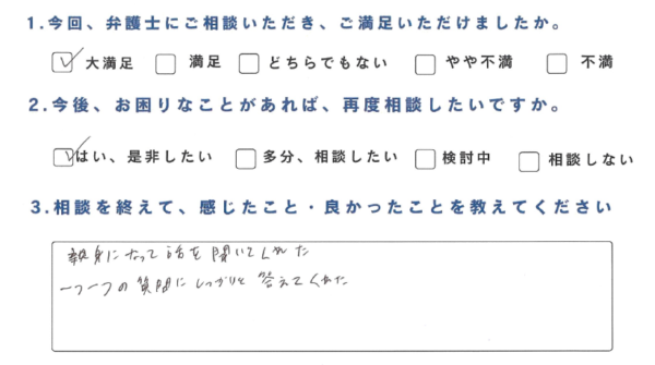 ・親身になって話を聞いてくれた。一つ一つの質問にしっかりと答えてくれた。