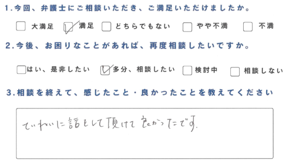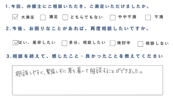・相談しやすく、緊張せずに落ち着いて相談することができました。